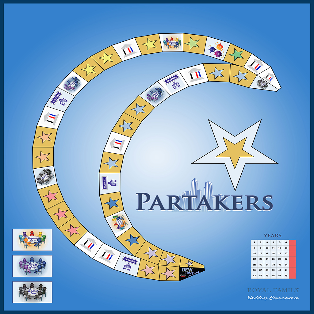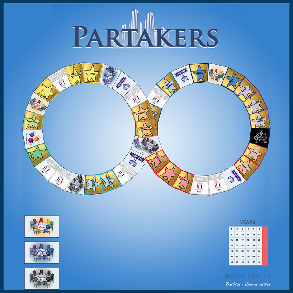 Partakers is a team-building, family board game, which promotes teamwork, collaboration and togetherness, especially in commerce.